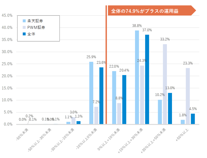 ▽投資信託における運用損益別顧客比率(2025年3月末時点)